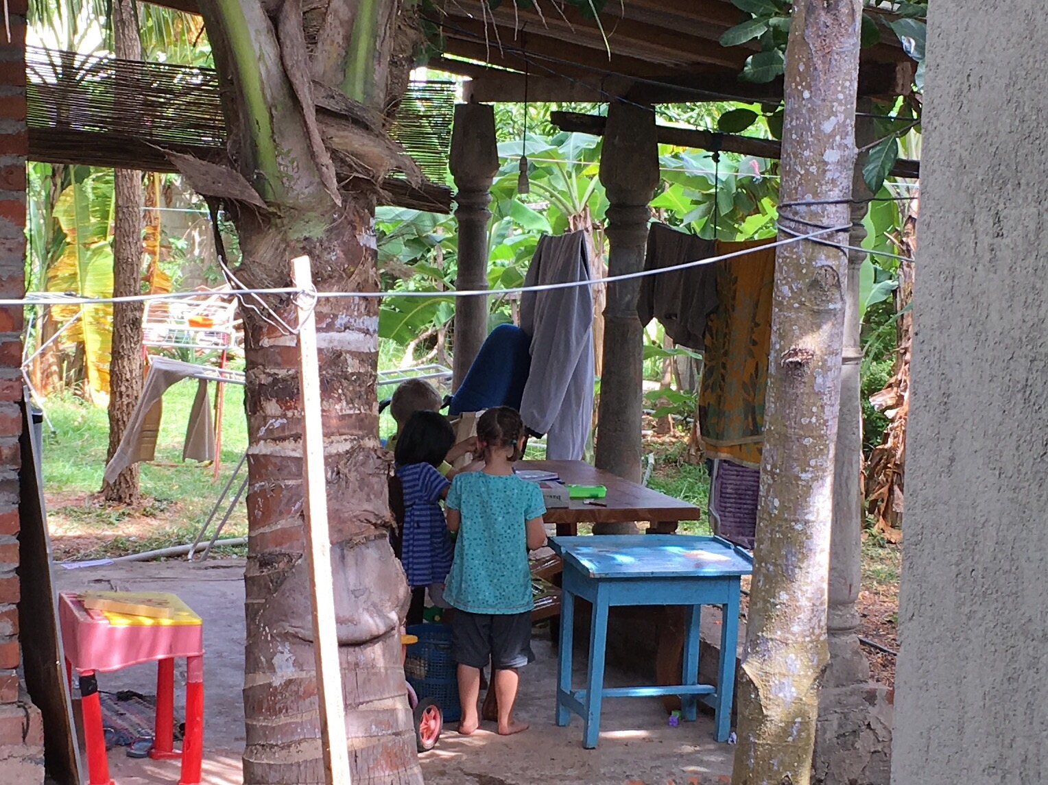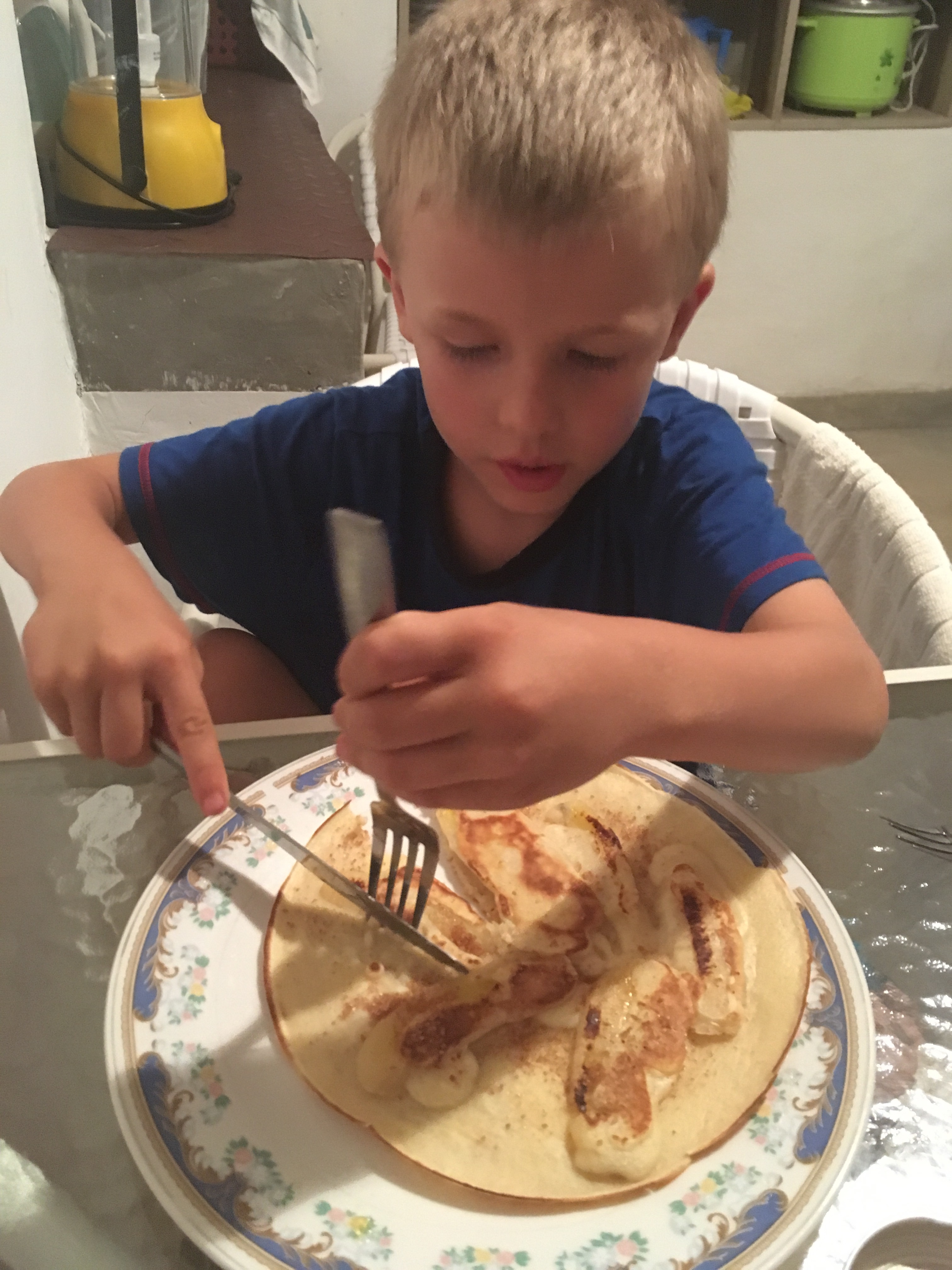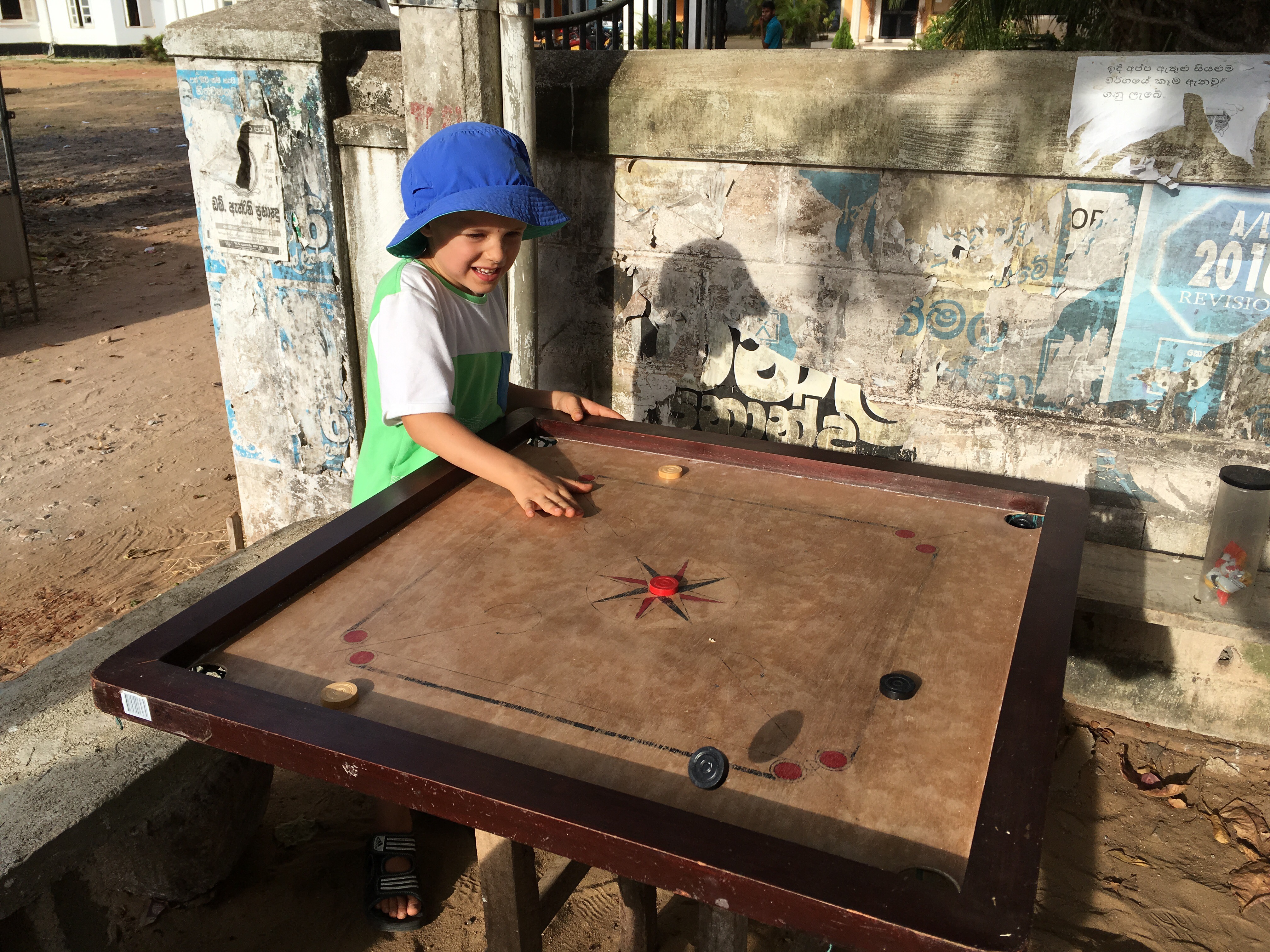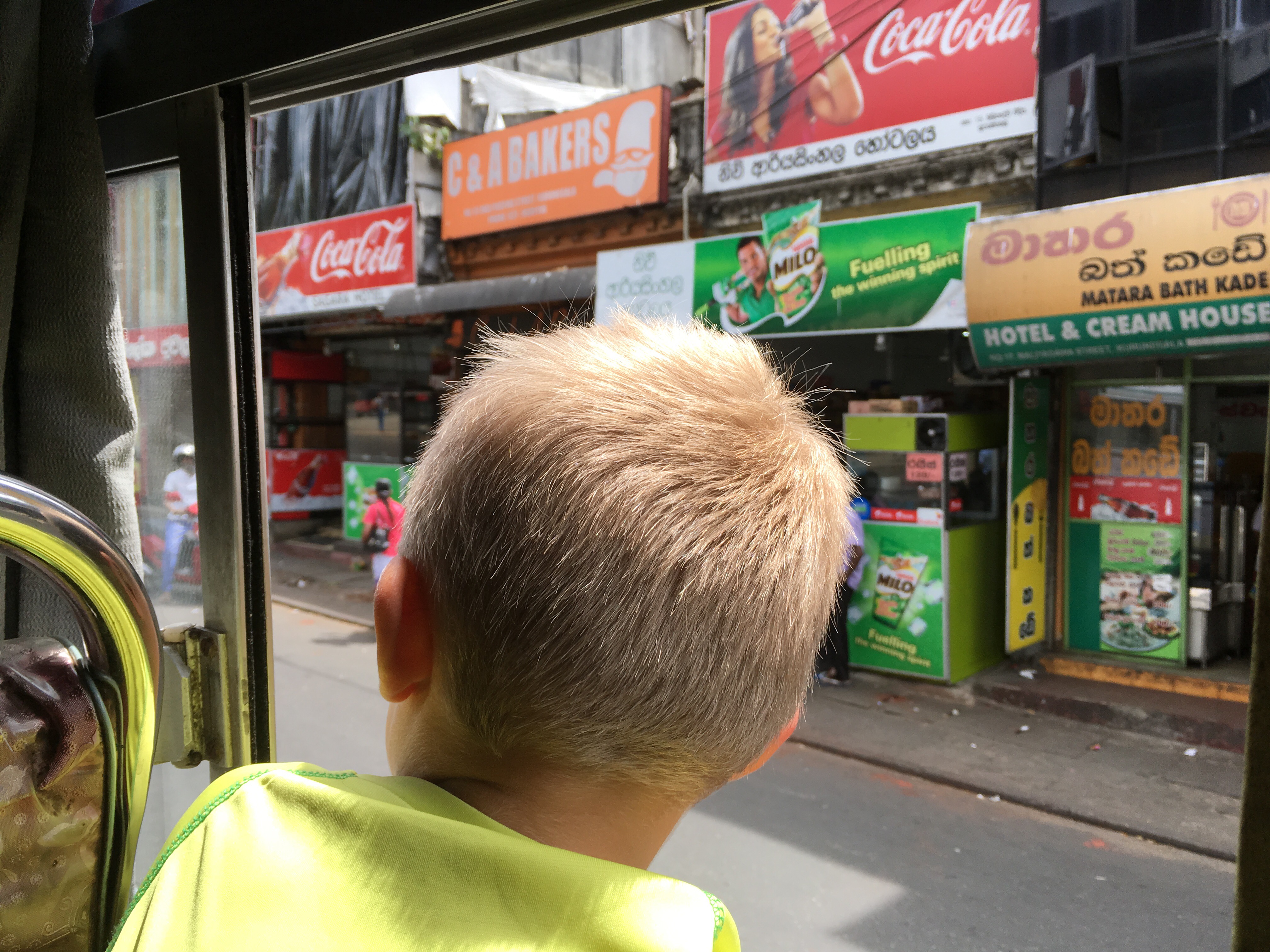 Wir gehen entlang schöner Häuser und Neubauten den Hang hinab. Es hat uns in eine der besseren Gegenden Kandys verschlagen. Im Talkessel angelangt, steuern wir vorbei am Busbahnhof auf den Bahnhof zu. Der Verkehr ist immens. Dutzende Busse suchen sich laut hupend ihren Weg, dazwischen drängelt sich der normale Verkehr, sowie etliche Tuk Tuks und Fußgänger. Es ist laut und stickig und wir sind froh, als wir die Bahnhofshalle erreichen. Am Schalter erhalten wir die schlechte Nachricht, dass alle Züge in zwei Tagen Richtung Ella ausgebucht sind. Es ist Ferienzeit in Sri Lanka und ganze Schulklassen sind unterwegs. Es ist zwar kein Problem mit dem Bus nach Ella zu kommen, allerdings war die Zugfahrt fest in unsere Reise eingeplant. Der junge Mann am Schalter sieht für uns nach und kann uns noch drei Tickets für den Teil Nanu-Oka nach Ella verkaufen. Nach kurzer Überlegung stimmen wir zu, schließlich gilt die Strecke zwischen Nanu-Oja und Ella als eine der schönsten Streckenabschnitte des Landes. Für die Fahrt dorthin planen wir zunächst einmal den Bus ein. Zufrieden machen wir uns auf den Heimweg, den Berg zu Fuß wieder hinauf. Wir steuern auf halber Strecke noch einen Supermarkt ein, denn die Küche wollen wir nutzen, es gibt Pfannkuchen und Nudeln in den nächsten zwei Tagen. Den Kindern ist die Freude darüber anzusehen. Für Oskar gibt es einen Papa-Spezial-SriLanka-Bananenpfannkuchen, den auch Anne nicht verschmäht. Reisen und Wandern macht offenbar hungrig, selbst Mathilda verputzt vier „Pancakes“.