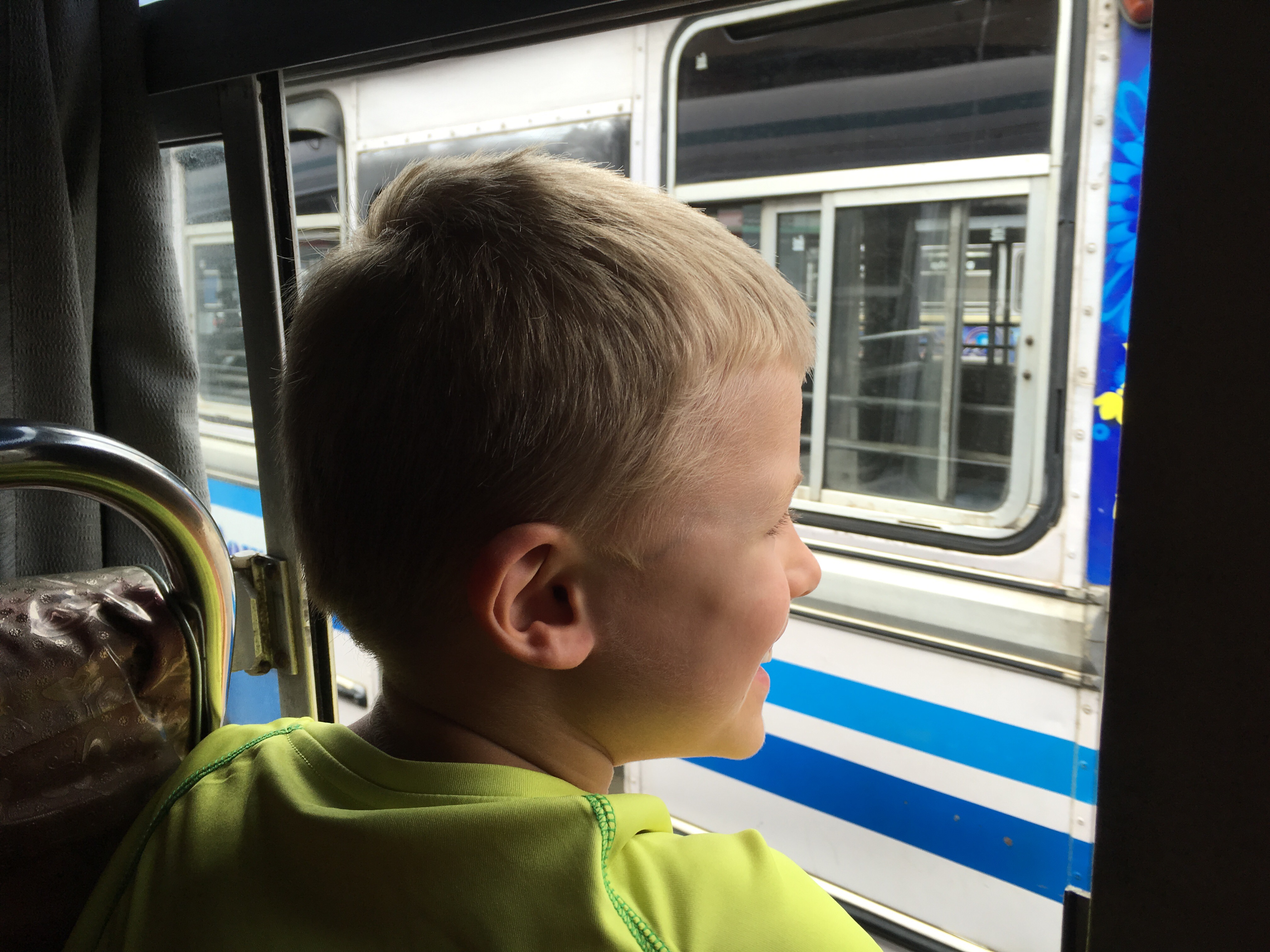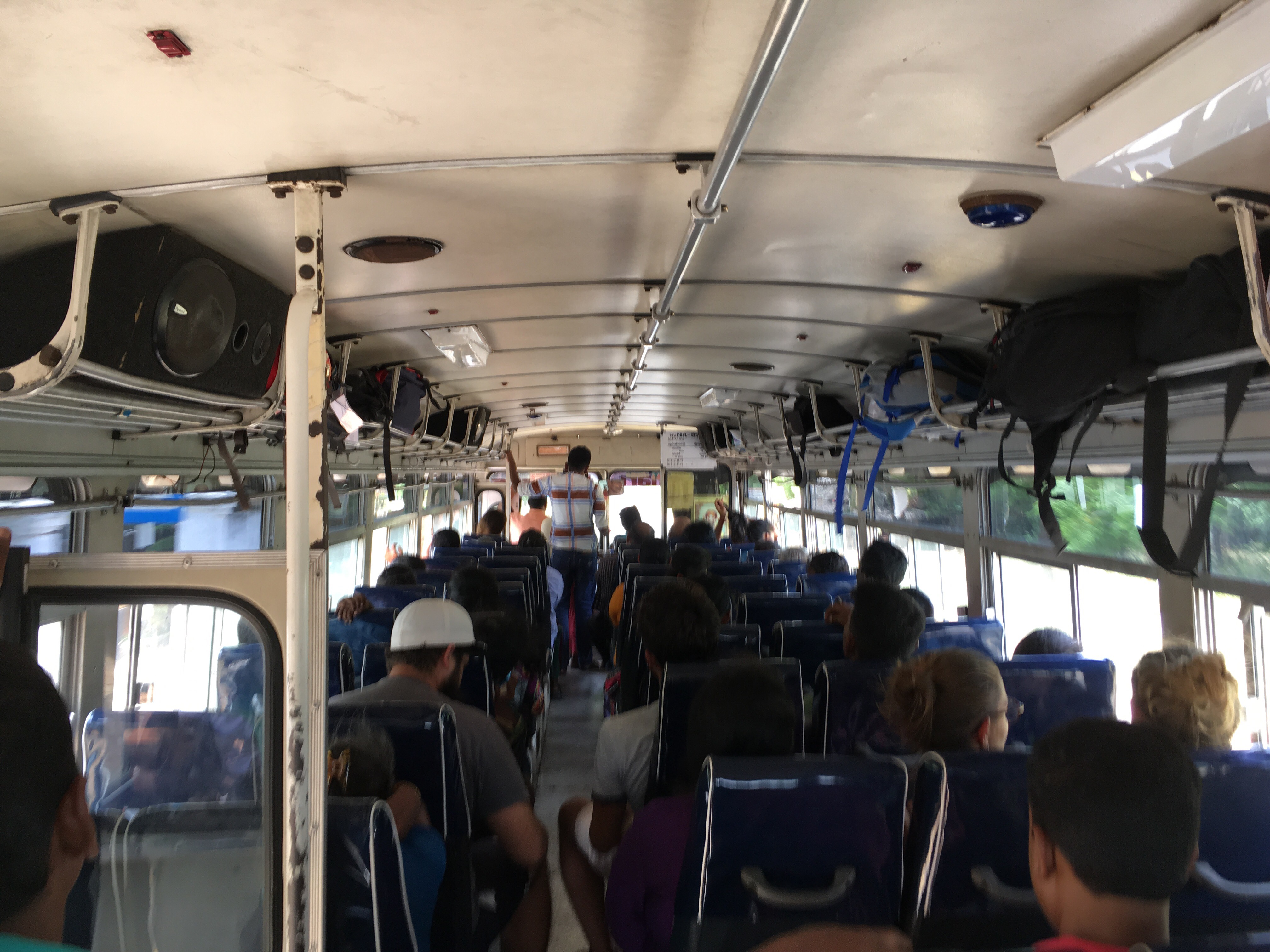 Wir haben uns entschlossen eine besser bewertete Unterkunft zu wählen. Die Busfahrt ist entspannt, der Bus nicht so voll und wir haben uns an den Mix aus indischer Popmusik, lautem Hupen und schlingern gewöhnt. Ich setze mich an die offene Hintertür und mache noch ein paar Bilder während Anne unseren Aufenthalt vor Ort plant.