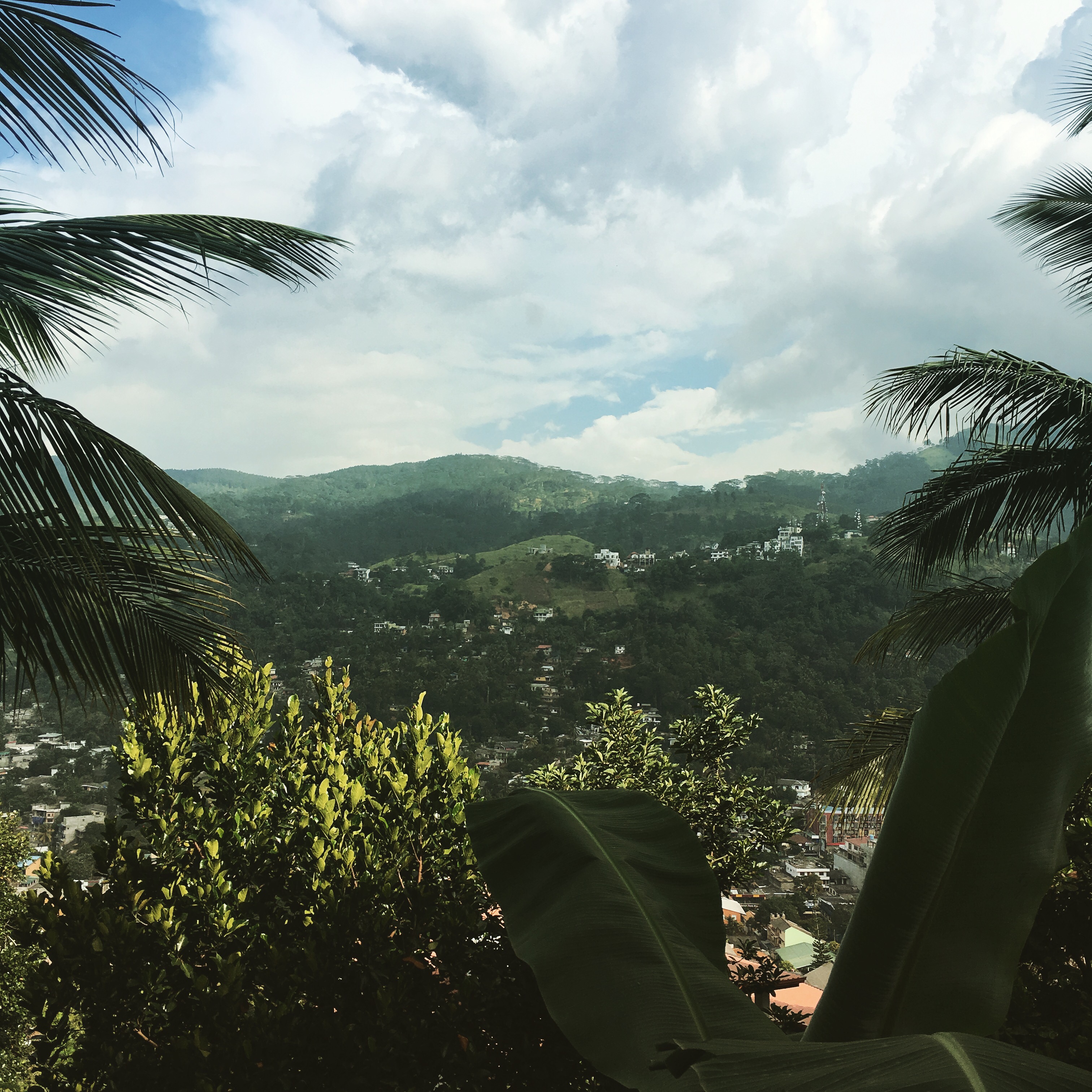 Es geht ein paar Kilometer bergauf, das Navi leitet uns in eine Sackgasse, ganz am Ende, oben angelangt, stehen wir vor der Einfahrt eines gepflegten Wohnhauses. Wir werden von der Vermieterin sehr freundlich empfangen und zunächst zu Tee, Saft und Obst auf ihre Terasse eingeladen. Wir gehen durch das sehr geschmackvoll eingerichtete Esszimmer hinaus und können unseren Augen kaum trauen. Vor uns im Tal erstreckt sich die alte Stadt Kandy, wir trohnen förmlich über allem und am Horizont gegenüber liegen die Wälder auf den Hügeln. Ein atemberaubender Anblick, den wir lange und ausgiebig mit unseren Getränken genießen.